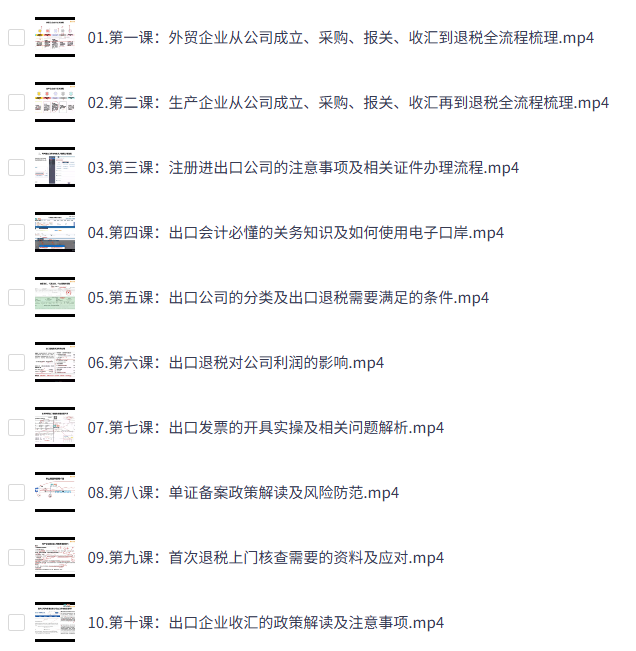 外贸出口退税实操课程。该课程系统梳理了外贸与生产企业在出口退税中的完整流程,包括企业成立、采购、报关、收汇到退税的整个过程。