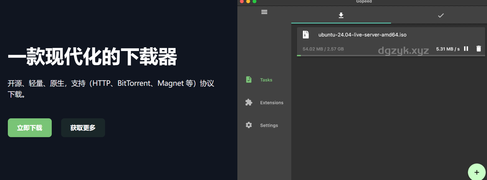 - 5Gopeed:高速下载工具,支持多种平台和下载方式(HTTP/BT/磁力链接)