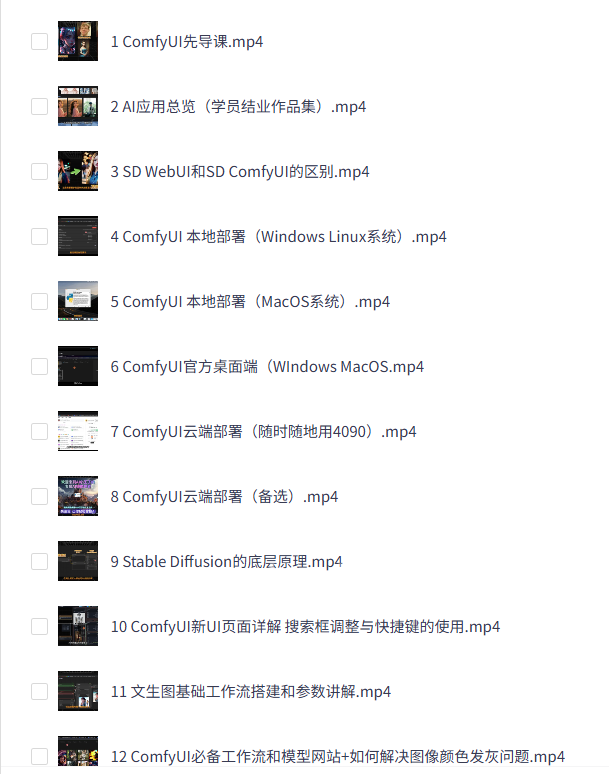 课程以ComfyUI为核心,系统讲解AI绘画与视频生成的完整流程,包括Stable Diffusion底层原理、ComfyUI本地与云端部署、提示词写作、工作流搭建与模型扩展等。