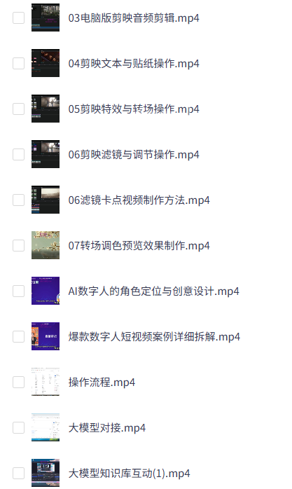课程的具体内容,包括剪辑与制作技巧、AI数字人应用以及AI技术提升与策略等方面。